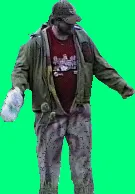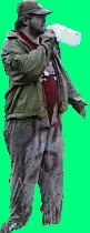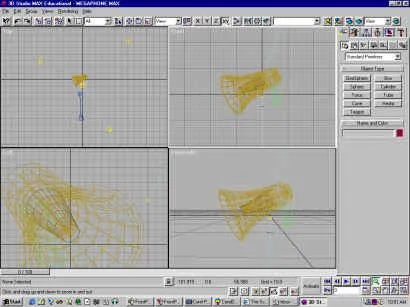 When all the cutting and pasting of Georges out of their pit backgrounds was finished, we had to find a way to get a megaphone in there. In walked the magic of Corel Photopaint, and 3D Studio MAX.