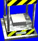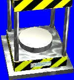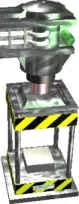 The forge is an exaggerated mechanical device which demonstrates the four different states of an Iron Ring in development. At each 1/3 of the way to completion, the forge swings onscreen and stamps the blank into the next stage of its development.