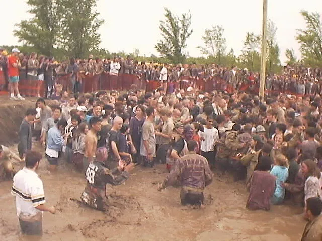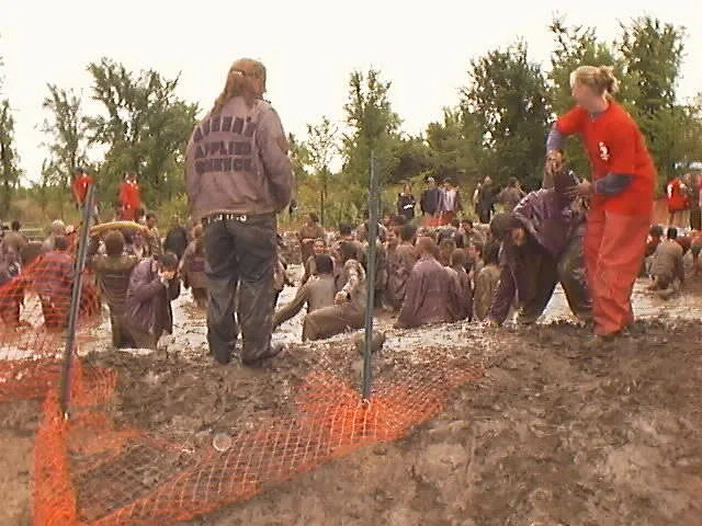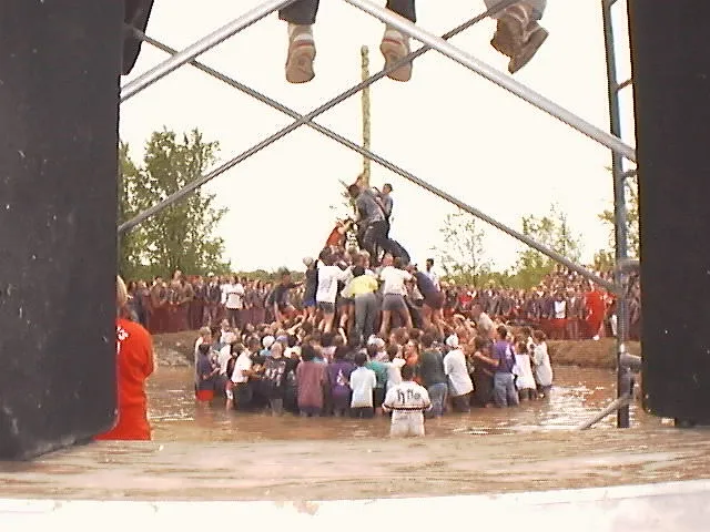 An eager upper-year student jumps the gun. I think that might be Derek Crawford, Sci '99... he's the guy diving into the pit in the credits sequence in The Pole Game.