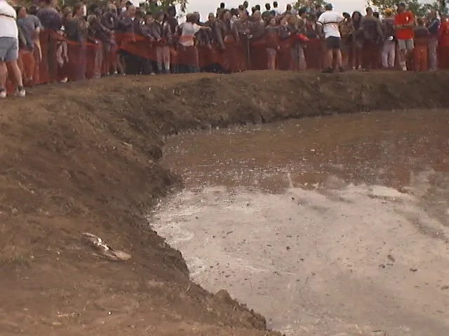 The pit you see in the game doesn't exist. It's a composite of dozens of shots like this. The splashing came from actual pit splashing...